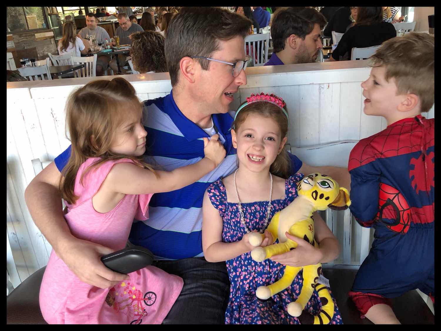 So...we couldn’t get a refund on that hotel reservation, but we could shift it to a better date. And today was the winner! Celebrate Daddy’s birthday, enjoy the weather that just keeps getting warmer, and, let’s face it, also luxuriate in the fact that none of us currently have strep throat (knocking on a giant piece of wood, here—though I should mention that Chicklet is currently sick with something as-yet-undetermined, but we just had to go for it anyway!).
