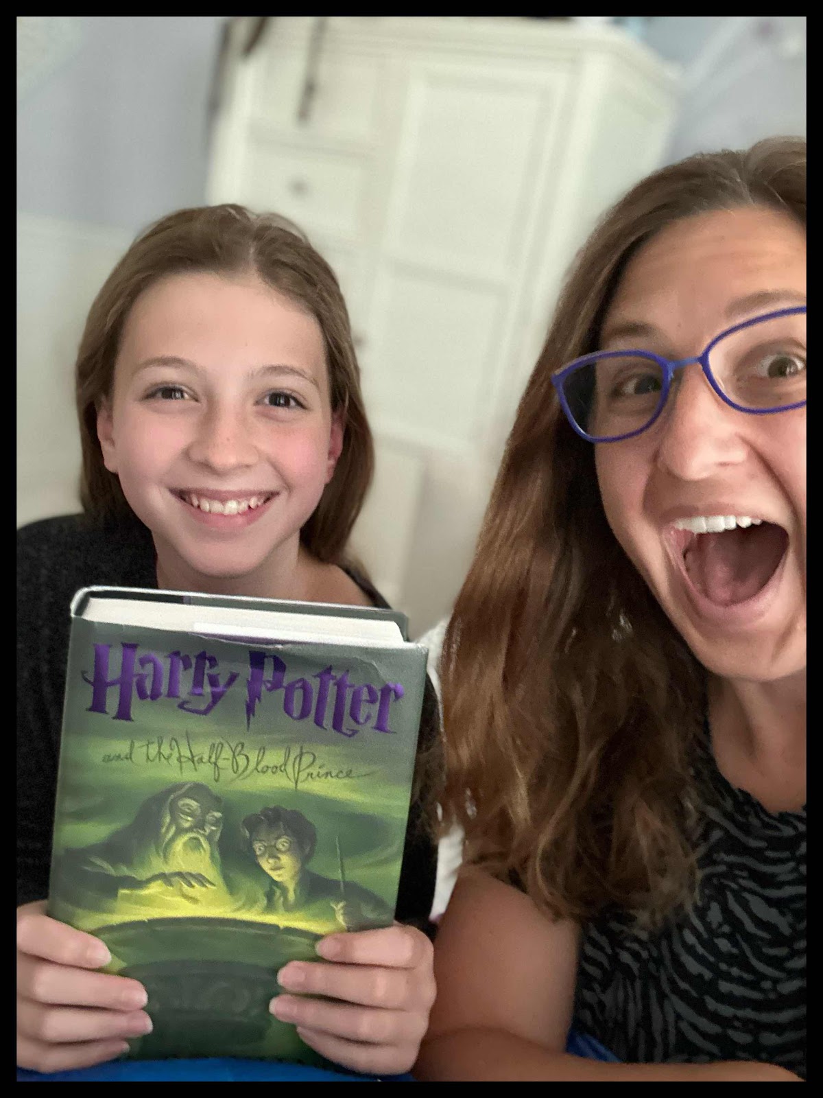 Toward late afternoon, when my back felt broken and my twins/not twins were hunkered downstairs (still) watching yet another movie, Chica and I squirreled away to finish the final two chapters of the sixth book. :)
