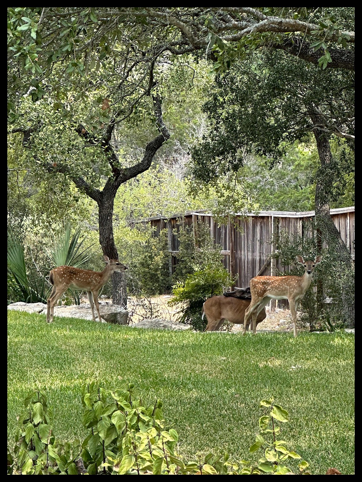 I know this might be in my head, but I feel like I see our deer friends a whole lot more on positive days (or maybe they help to make our days positive?) or at times of change, so it felt like an omen to pull into the driveway at midday and find our Mama friend and her two teenagers: