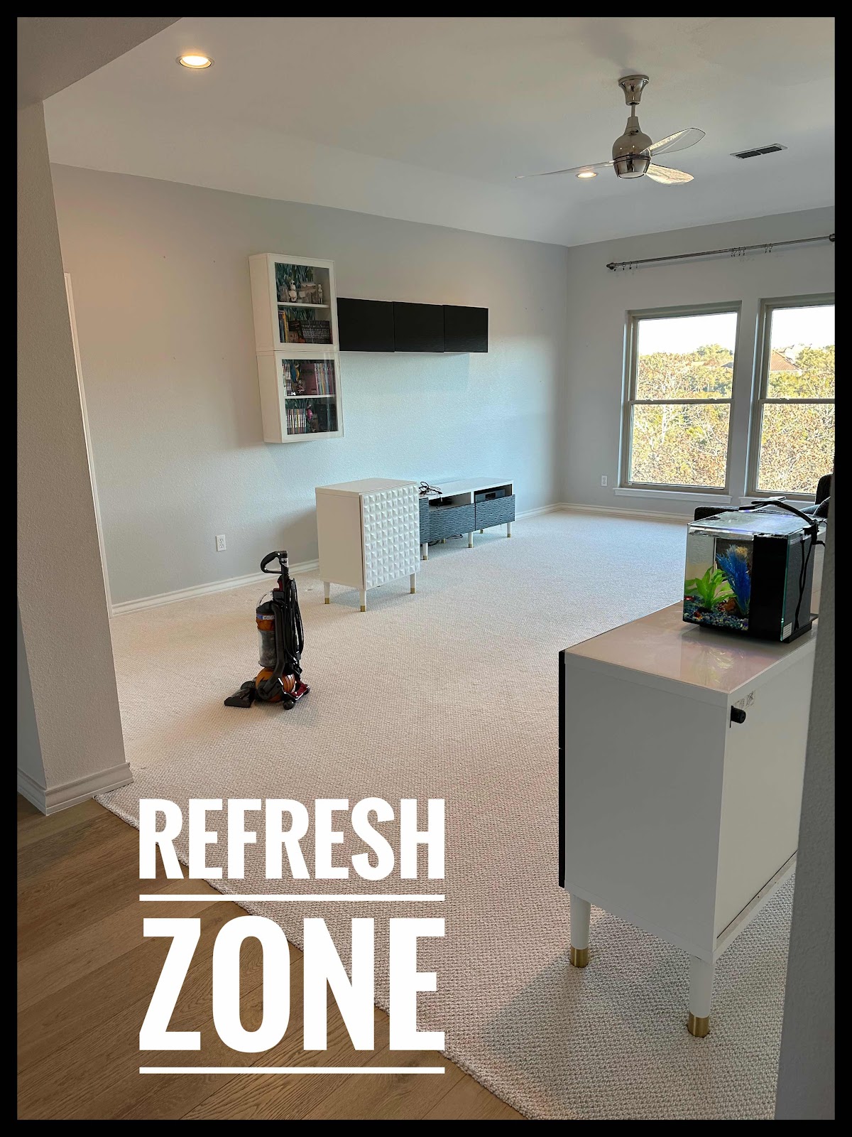 We’re tackling a refresh of this zone based on the changing needs of our growing kiddos and though it’s all good things, it was a mad dash last night to move furniture and toys and remove things from walls before the painting crew arrived this morning (we hadn’t officially planned for things to launch this week; yikes!).